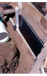 Keeping earthen walls dry is a key aspect of their conservation. We prefer to use a redundant system that sheds water at grade but also captures it in the subsurface.